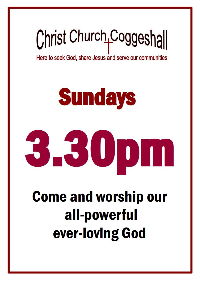 We are a friendly, informal church, based in the centre of Coggeshall. We meet for communal worship at 3.30 pm on Sundays.